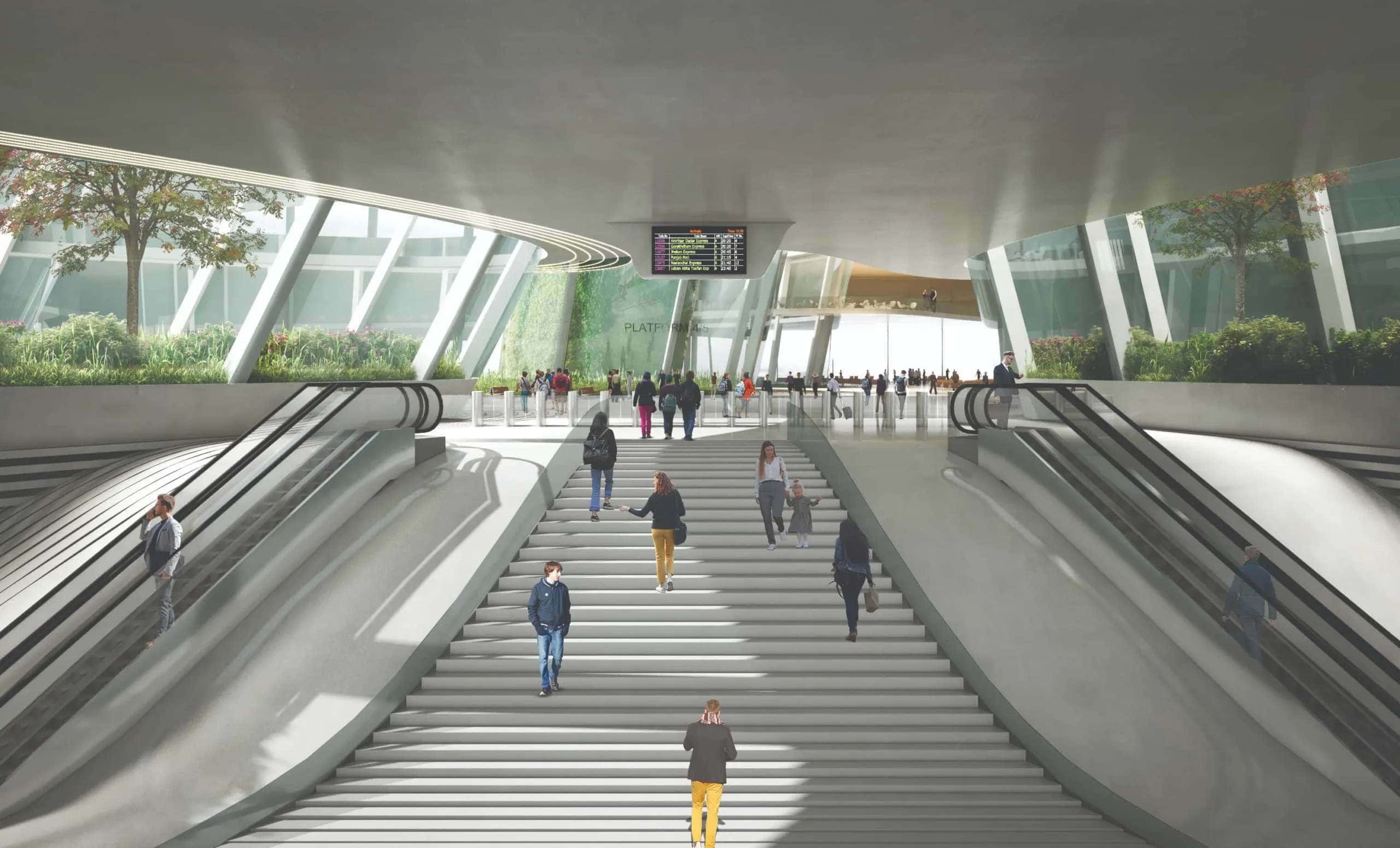 A multi-modal transport hub ensures ease of connectivity with the network. A bus depot is located adjacent to the station building with a segregated approach for buses. An underground subway connection to the metro is proposed, with an alternative overground shuttle service to connect the station building with the metro station.