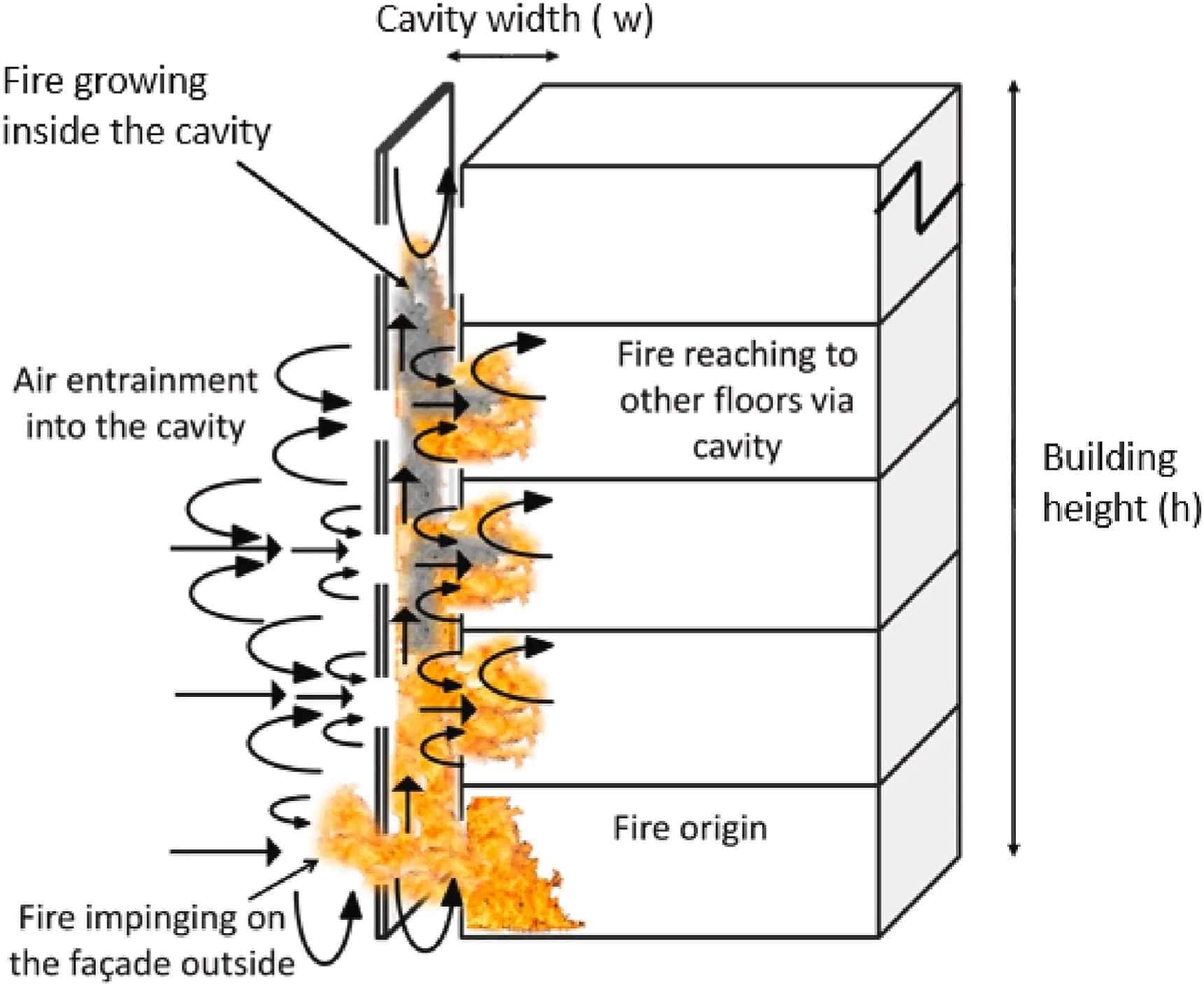 For façades, two important parameters that define the performance of fire-safe materials are their combustibility and smoke production. The air cavity between the cladding and insulation, provided for maintaining proper ventilation in the façade, acts as a chimney and supports rapid vertical fire spread to top floors.