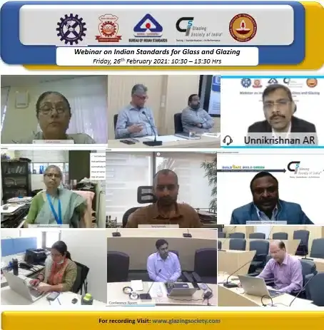 Bureau of Indian Standards (BIS), Glazing Society of India (GSI), Indian Institute of Technology (IIT) Madras and CSIR – Central Glass and Ceramic Research Institute (CGCRI) successfully organised the second webinar on Indian Standards for Glass and Glazing on the 26th of February 2021.