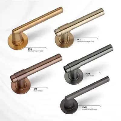 - Integrated Lock Levers: Integrated lock levers are revolutionising traditional door hardware by incorporating locking functions directly into the lever handle, eliminating the need for a separate escutcheon. These minimalist lever handles can also accommodate matching veneers and stones, seamlessly blending with the door finish and enhancing the overall aesthetic appeal.